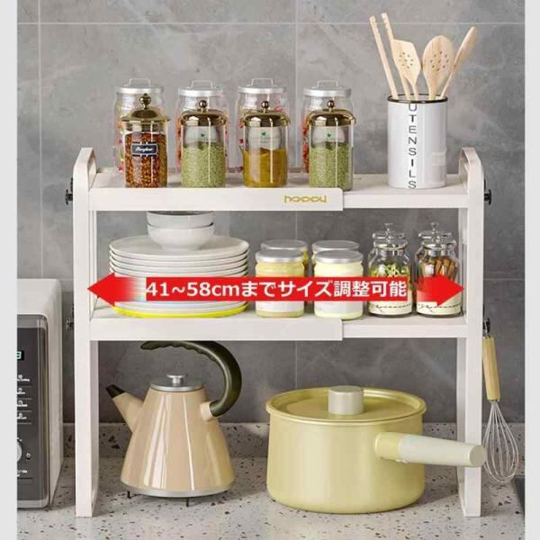 【商品仕様】素材:HIPSプラスチック サイズ:一段:約幅41~58×奥行22×高さ33cm 二段:約幅41~58×奥行22×高さ52.5cm