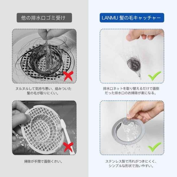 LANMU 髪の毛キャッチャー お風呂 排水口ネットホルダー 100枚 水切りネット付き お風呂 排水溝 ゴミ受け 髪の毛トリトリ 排水溝 ゴミ受け1
