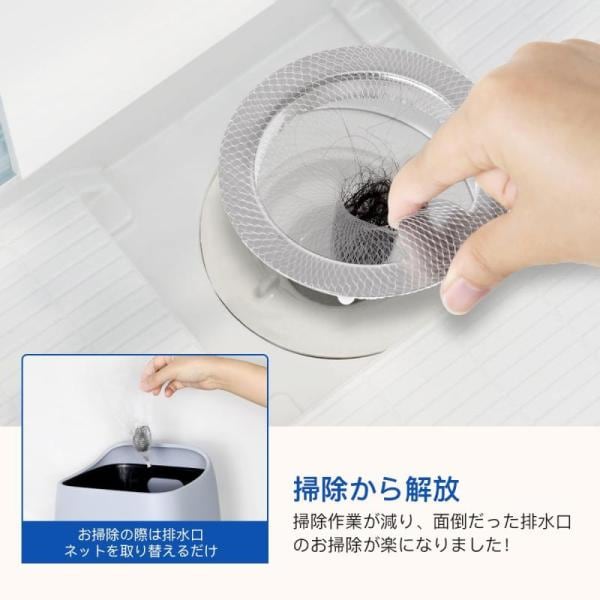 【掃除から解放】髪の毛キャッチャーにネットを装着することで、お風呂内の髪の毛や細かいゴミをしっかりキャッチします。お掃除の際はネットを取り替えるだけなので、掃除作業が減り、面倒だった排水口のお掃除が楽になりました