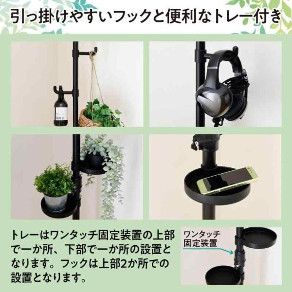 [山善] 突っ張り ラック ポールハンガー プランタースタンド ワンタッチ突っ張り (実用新案取得済) 幅30×奥行30×高さ190-260cm フラワースタンド 室内 トレー2個・フック2個付き 組立品 マット