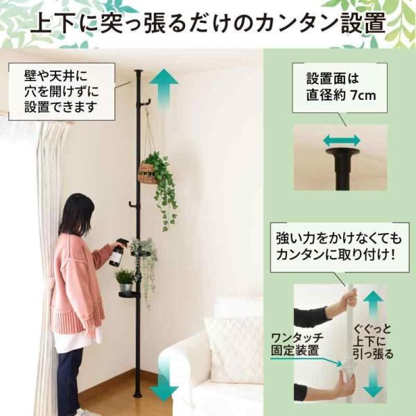 [山善] 突っ張り ラック ポールハンガー プランタースタンド ワンタッチ突っ張り (実用新案取得済) 幅30×奥行30×高さ190-260cm フラ2