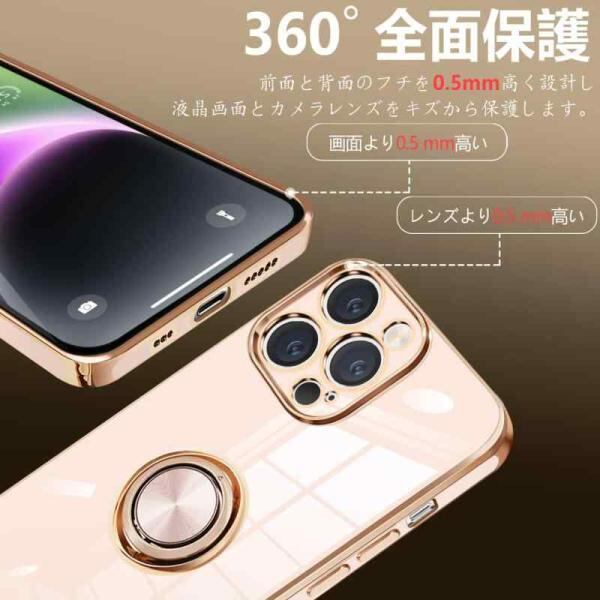 iPhone14 Pro Max ケース リング付き アイフォン14ProMax リング カバー 耐衝撃 TPU 360°回転 スタンド機能 メッキ加6