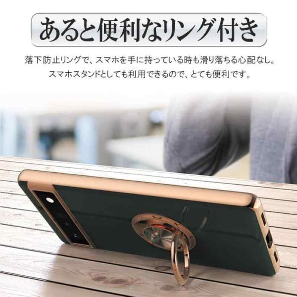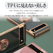 Google Pixel 6a 用 リング付きソフトケース ピンク x ゴールド TPU保護ケース スタンド機能付き 360回転カバー 耐衝撃 シリコ1