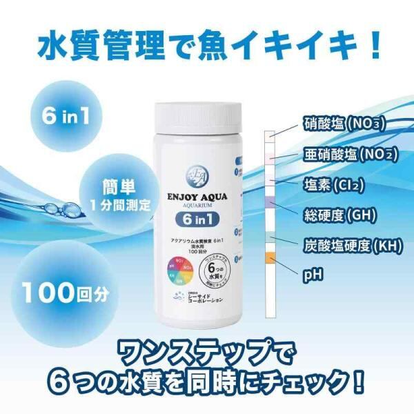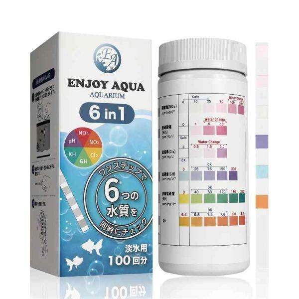 [ENJOY AQUA] 水換えのタイミングがわかる 水質管理で魚イキイキ アクアリウム 6in1 水質検査紙 淡水用 100回分 日本語説明書付き