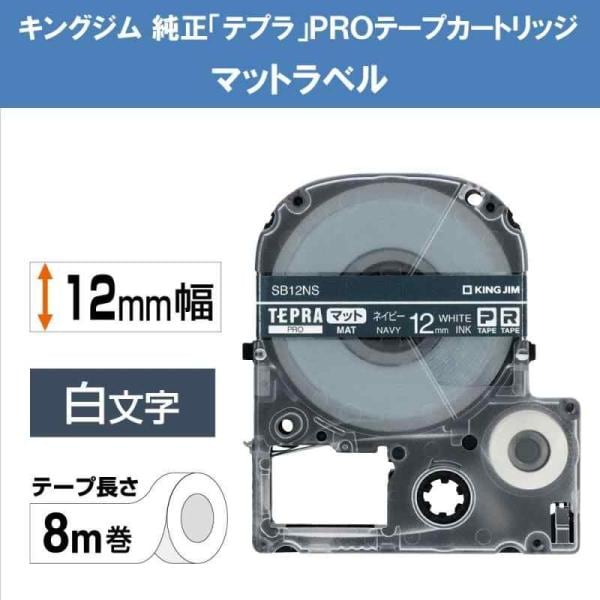 キングジム 【純正】 テプラPROテープカートリッジ マットラベル 12mm ネイビー/白文字 8m SB12NS