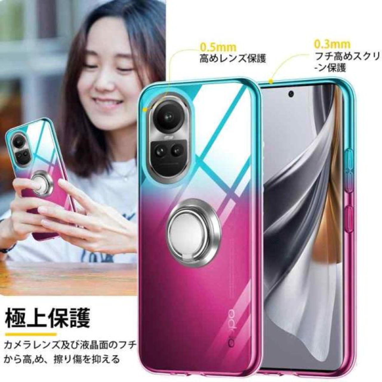 OPPO Reno10 Pro 5G ケース リング TPU 薄型 軽量 シリコン グラデーション色 ケース スマホケースReno10 Pro 専用 耐衝撃 指紋防止 車載ホルダー対応 防塵 一体型 人気 携帯カバー 全面保護カバー ?