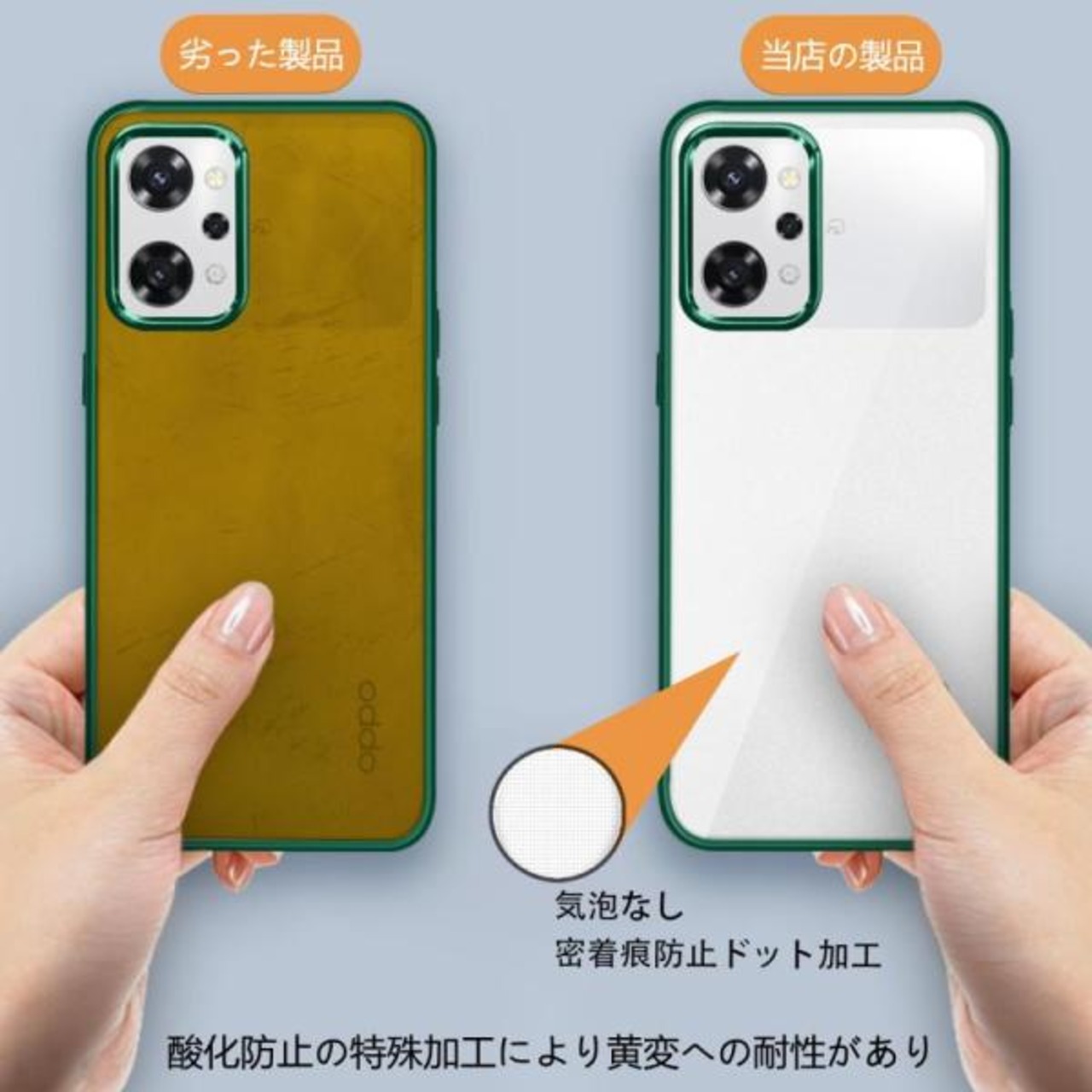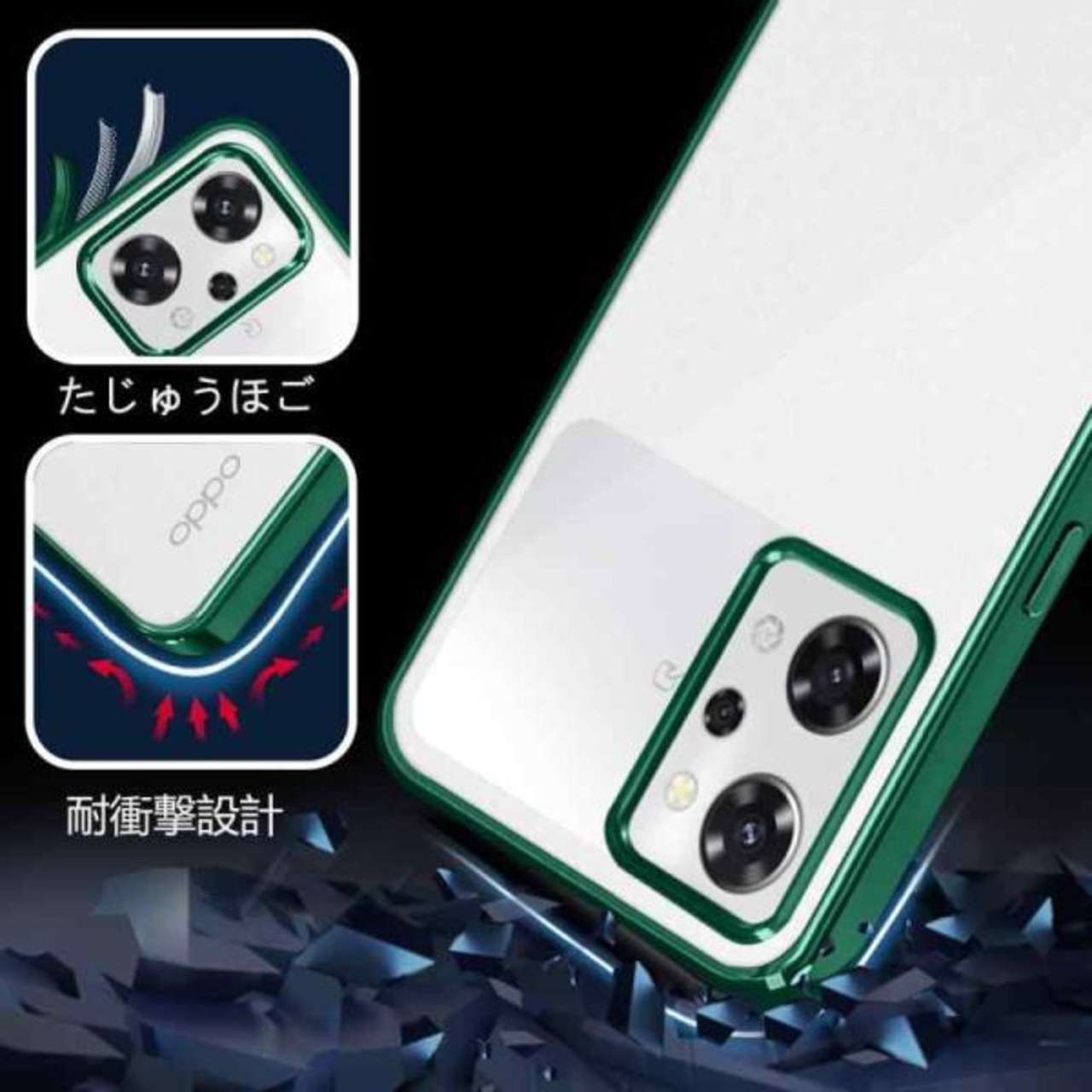 OPPO Reno7 A ケース クリア OPPO Reno9 A ケース OPG04 A201OP カバー 耐衝撃 メッキ加工 スマホケース ストラップホール付き 軽量 薄型 透明 持ちやすい TPU素材 グリーン