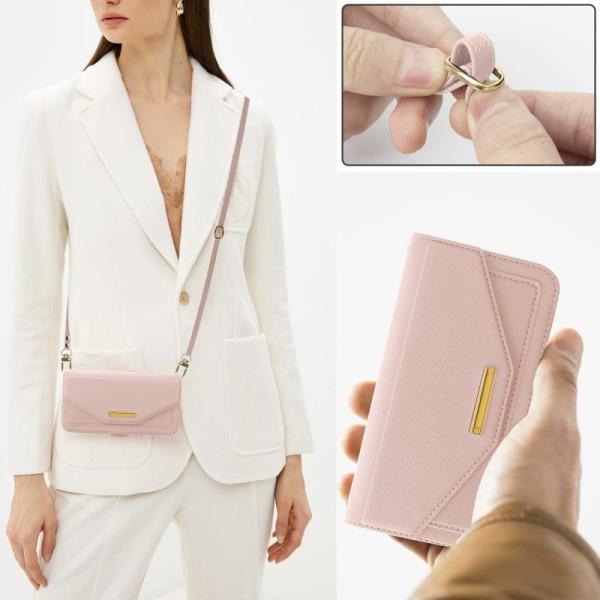 NODALA iPhone15 ケース 手帳型 アイフォン15 スマホケース 財布型 ショルダー あいふぉん15 携帯ケース 肩掛け 斜めがけ カバー 手帳型 小銭入れ カード収納 ロングストラップ 長さ調節可能 ミラ