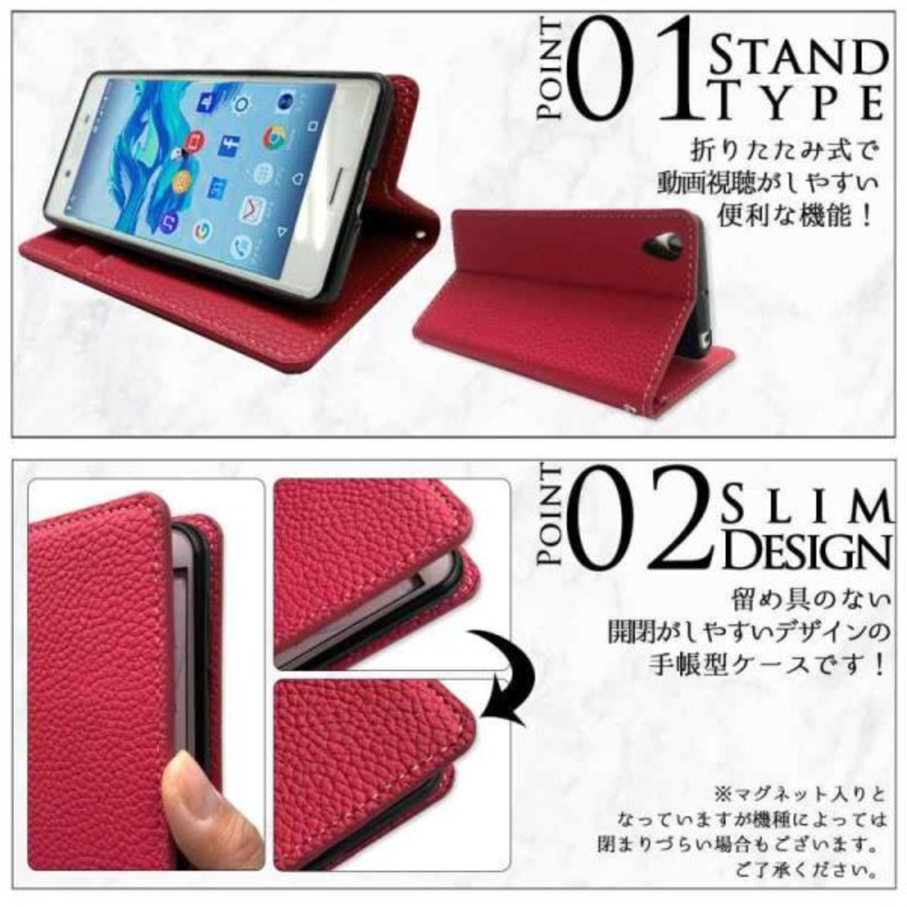 機種に合わせた開口部が開いております。電源ボタン等はケースの上から押す仕様となっております。ご了承ください。手帳型ケースはスマホ本体より大きめの作りになっております。