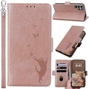 Samsung Galaxy S23 ultra ケース 手帳型 ギャラクシーs23 ultra ケース 手帳型 s23 ultra case galaxy s23 ultraカバー 蝶と猫の3Dパターン スタンド キャッシュポーチ リストストラップ プレミアム耐久性PUレ
