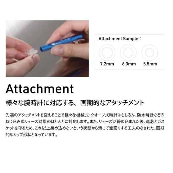 アタッチメントが樹脂製で竜頭に傷がつきにくい