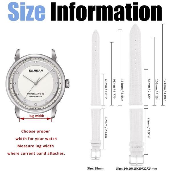 OLLREAR 皮 時計ベルト 時計 ベルト 替えベルト 時計ベルトラバー - 6 色 & 6 サイズ - 14mm, 16mm, 18mm, 20mm, 22mm, 24mm (16mm, White)