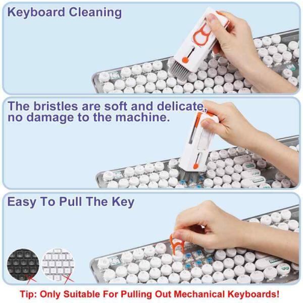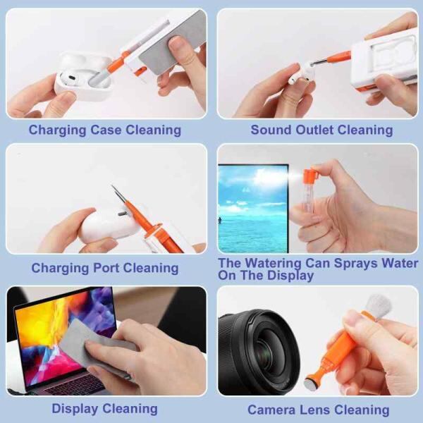 ?【11 in 1多機能掃除道具】クリーニング キットには、イヤホン用クリーニング ペン (シリコン 先端、ミニ ブラシ、植毛スポンジブラシ付き)、高密度ソフト ブラシ、スプレー ボトル (空)、ファイバーブラシ、キーキャップ バックルが含まれます。 イヤホン、キーボード、PCモニター、携帯電話、カメラなどの掃除に。