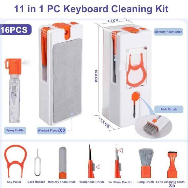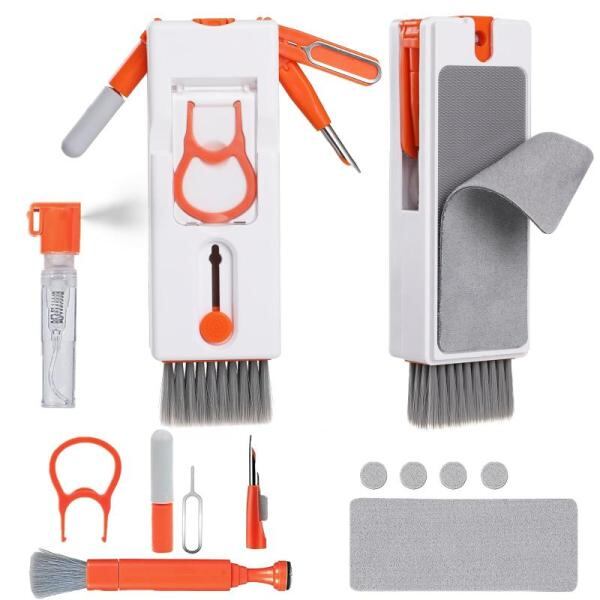 Bigqin 11 in 1 多機能クリーニングキット イヤホン掃除道具 キーボード、パソコン、ワイヤレスイヤホン、スマホ、カメラ用の掃除ツール スマートフォンホルダー機能付き - オレンジ色