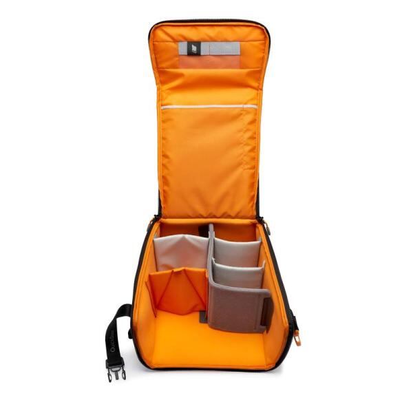 【QuickDoorで素早く機材にアクセス】バッグの中に入れた状態で簡単に機材の取り出しが可能。QuickDoorロックストラップを閉めれば不用意に開くことを防げる。