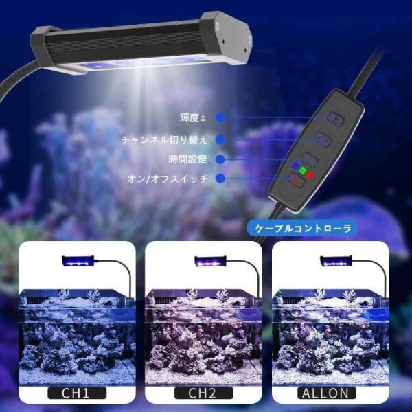 Lominie 水槽ライト LED アクアリウム ライト 4チャンネル調光可能 海水魚 サンゴライト 青 10W 小型水槽照 フルスペクトル明 クリッ1