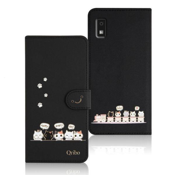 Qribo Aquos wish3 ケース 手帳型 アクオス wish3 ケース 手帳型 アクオス wish3 カバー Aquos wish3 A302SH ケース シンプルなのに可愛いデザイン エンボス加工猫柄 うれしい気持ち 5.7インチ対応 アクオ