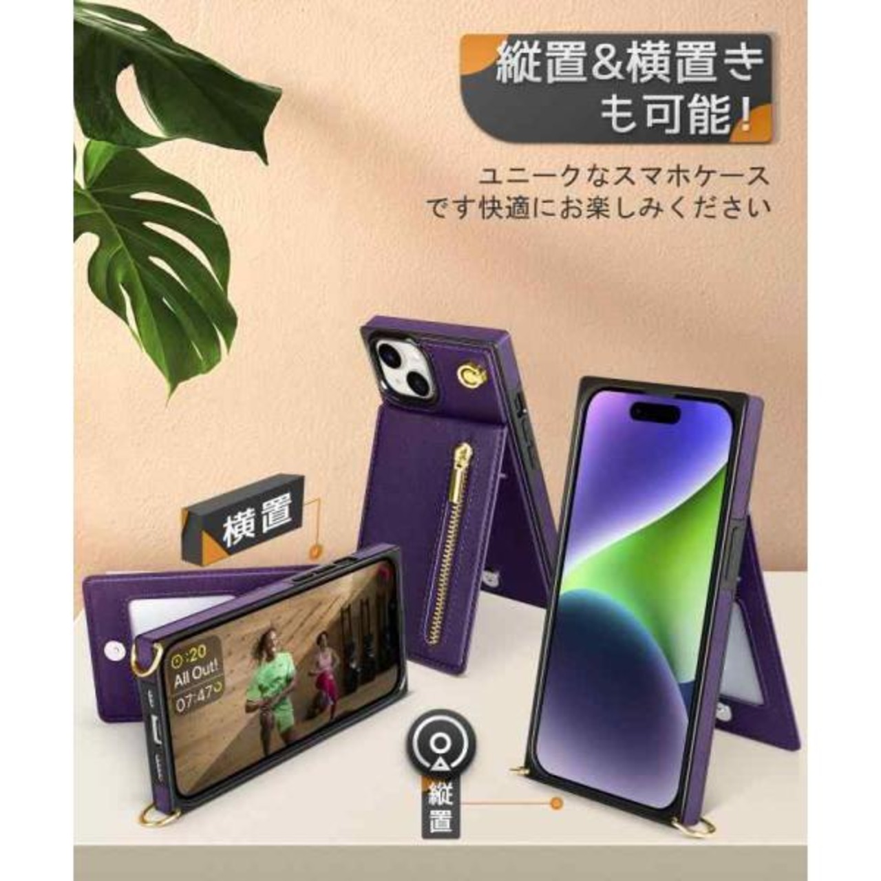 【ショルダーストラップ付き】長さ調整が可能なショルダーベルトで、斜め掛けや肩掛けが可能。首に掛けておけば落とす心配もありません。お買い物に行く時にずっとスマホを手