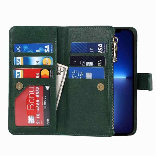 Eastwave アイフォン14 Pro ケース iPhone 14pro 縄掛けケース iPhone14 Pro 手帳型 財布型 ICカード コインポケット ストラップ付き カード 収納 小銭入れ ファスナーポケット付き PUレザー 6色グリーン