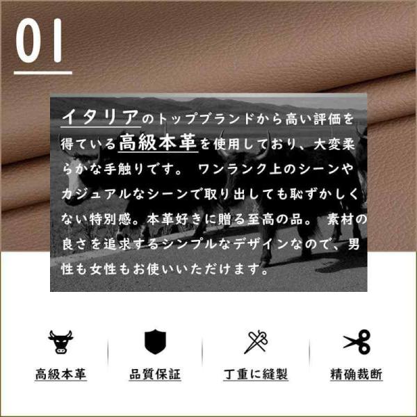 ?【高級牛本革】イタリアのトップブランドから高い評価を得ている高級牛本革を使用しており、大変柔らかな手触りで、見た目もすごく高級感があります。天然皮革(牛革)の特徴として、動物が生きた環境、食べ物、年齢などにより、皮の厚さ・硬さ・質感・シワ・傷・ホクロ・スジ・凹みなどが異なり同じものはふたつとありません。これが、さらに染色などの加工が施され更なる1枚1枚の味わいを醸し出します。経年変化(エイジング)は、自分だけの風合いがでることが革製品の醍醐味。使い込むごとに世界に1つだけのア