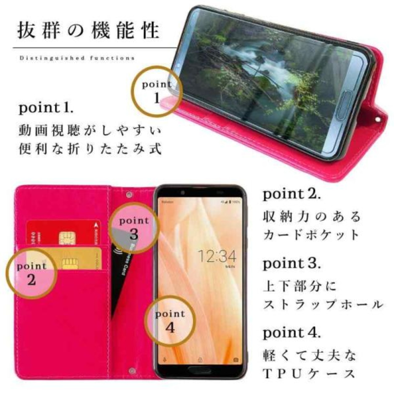 AQUOS R5G SH-51A SHG01 908SH ケース 大人の雰囲気漂う 編み込み 手帳型 手帳 カバー スタンド機能 2つ折り ピンク a1