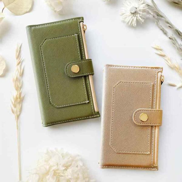 ハンドの留め金具はしっかり閉まるゴールドカラーのスナップボタンを使用しております。スタンド式充電、ワイヤレス充電には対応しておりません。