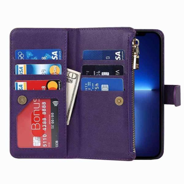 Eastwave アイフォン14 Pro ケース iPhone 14pro 縄掛けケース iPhone14 Pro 手帳型 財布型 ICカード コインポケット ストラップ付き カード 収納 小銭入れ ファスナーポケット付き PUレザー 6色パープル