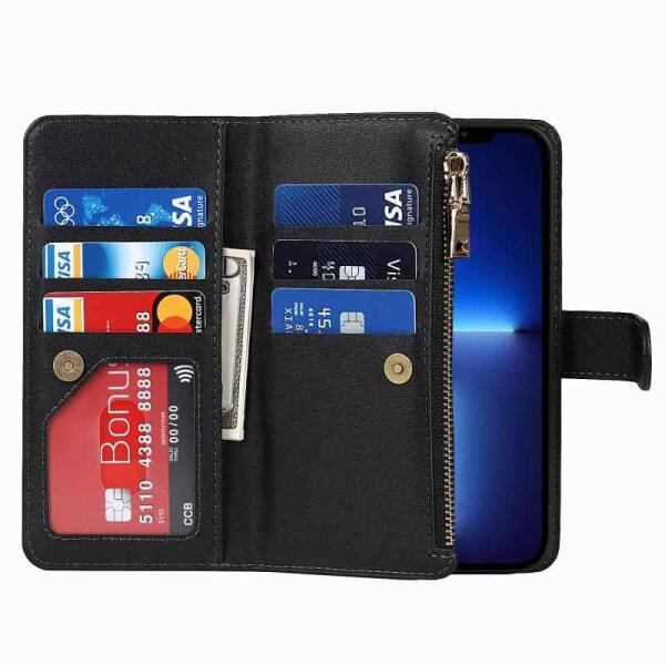Eastwave アイフォン14 Pro ケース iPhone 14pro 縄掛けケース iPhone14 Pro 手帳型 財布型 ICカード コインポケット ストラップ付き カード 収納 小銭入れ ファスナーポケット付き PUレザー 6色ブラック