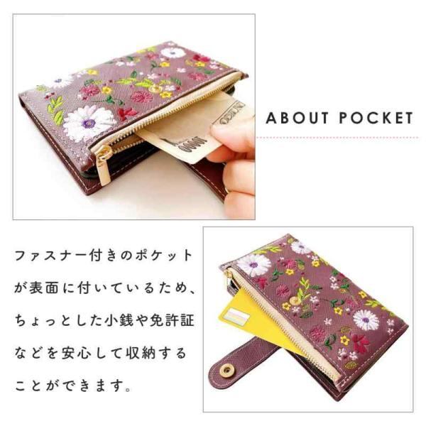 AQUOS R7 SH-52C A202SH 専用 手帳型ケース。小銭や免許証等の収納に便利なファスナー付きの手帳型ケースです。上品なサフィアーノ生地に、色鮮やかな花柄の刺繍を施しています。