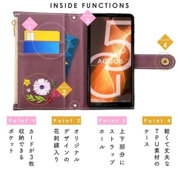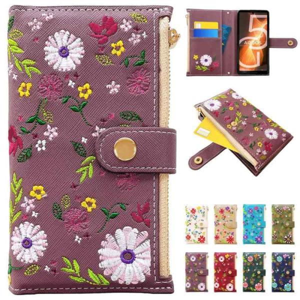 AQUOS R7 SH-52C A202SH 用 ケース カバー 手帳型 手帳型ケース SH52C SH-52Cケース SH-52Cカバー A202SHケース A202SHカバー SH52Cケース SH52Cカバー スマホケース スマホカバー おしゃれ花刺繍 プラム