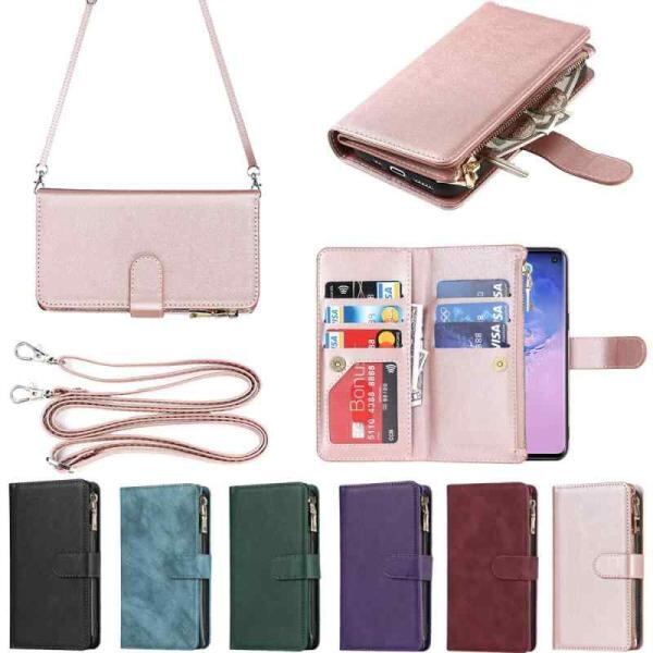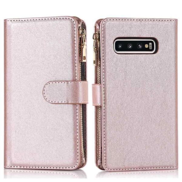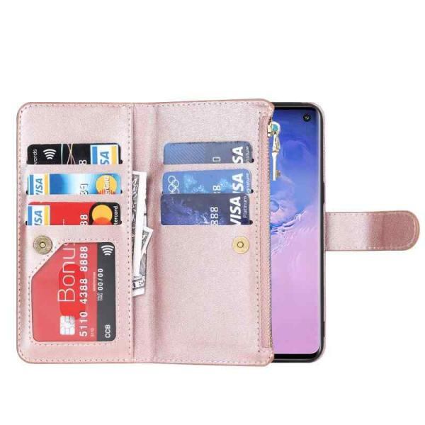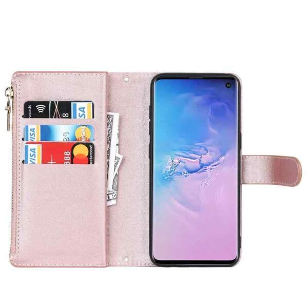 Eastwave サムスン ギャラクシー S10 ケース Samsung Galaxy S10 縄掛けケース 手帳型 財布型 ICカード コインポケット ストラップ付き カード 収納 小銭入れ ファスナーポケット付き PUレザー 6色 ピ