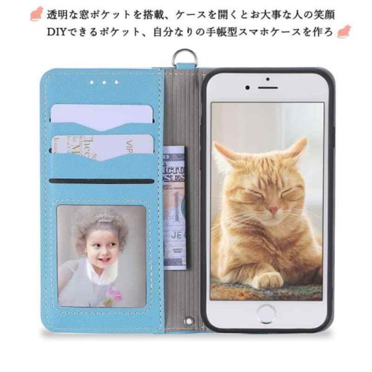 iphone se 2022 手帳型ケース iPhone se 第2世代 猫 可愛い 4.7インチ対応 iphone se 第3世代 スマホケース 手帳型 薄型 ストラップ付き 顆粒感の表層レザー iPhone se ケース 第2世代 手帳型 マグネット ベ