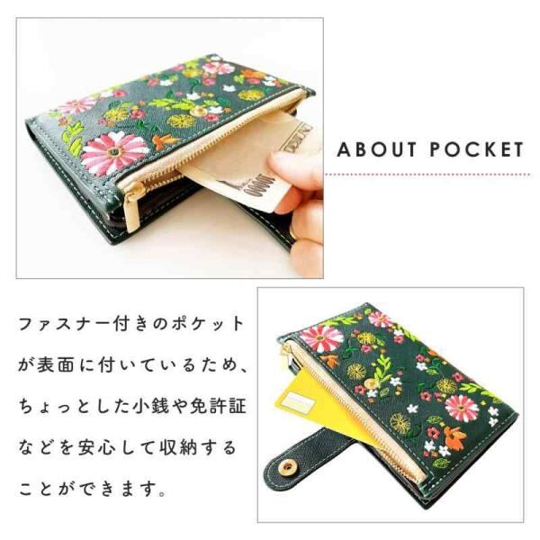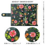 Xperia 5 V SO-53D SOG12 XQ-DE44 専用 手帳型ケース。小銭や免許証等の収納に便利なファスナー付きの手帳型ケースです。上品なサフィアーノ生地に、色鮮やかな花柄の刺繍を施しています。