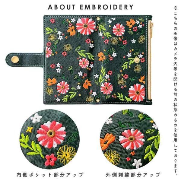 Xperia 5 V SO-53D SOG12 XQ-DE44 用 ケース 手帳型 カバー 手帳型ケース SO53D SO-53Dケース SO-53Dカバー SOG12ケース SOG12カバー XQ-DE44ケース XQ-DE44カバー おしゃれ花刺繍 ダークグリーン