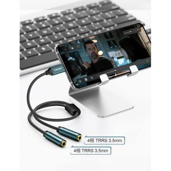 LOKUKA usb c イヤホンジャック 二股 4極 分岐 分配 マイク機能搭載 ボイスチャット DAC搭載 ハイレゾ対応 音楽再生 音声通話 音量1