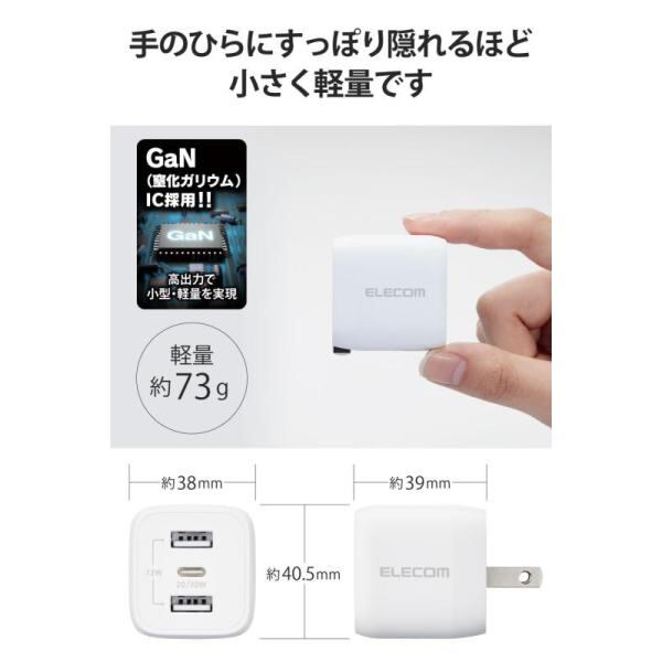 エレコム 充電器 Type-C 3ポート USB-C×1 USB-A×2 32W USB PD対応 折りたたみ式プラグ GaN採用 【 iPhone15/iPad/Macbook Air など対応】 ホワイト EC-AC4032WH