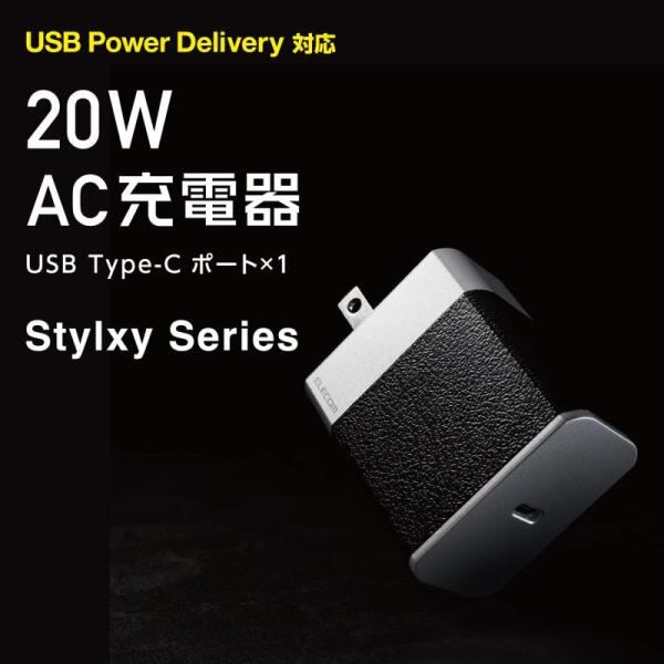 エレコム 充電器 Type-C USB PD対応 20W Stylxyシリーズ 1ポート USB-C 折りたたみ式プラグ 【Google Pixel OPPO Xperia Galaxy AQUOS iPhone15 iPad Apple Watch 等対応】 ブラック EC-AC28BK 1)単体