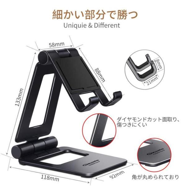 Glazata アルミ製スマホ/タブレット用スタンド 折り畳み式 270°自由調整可能 デスクトップスタンド スマホ タブレット 「グレー」1