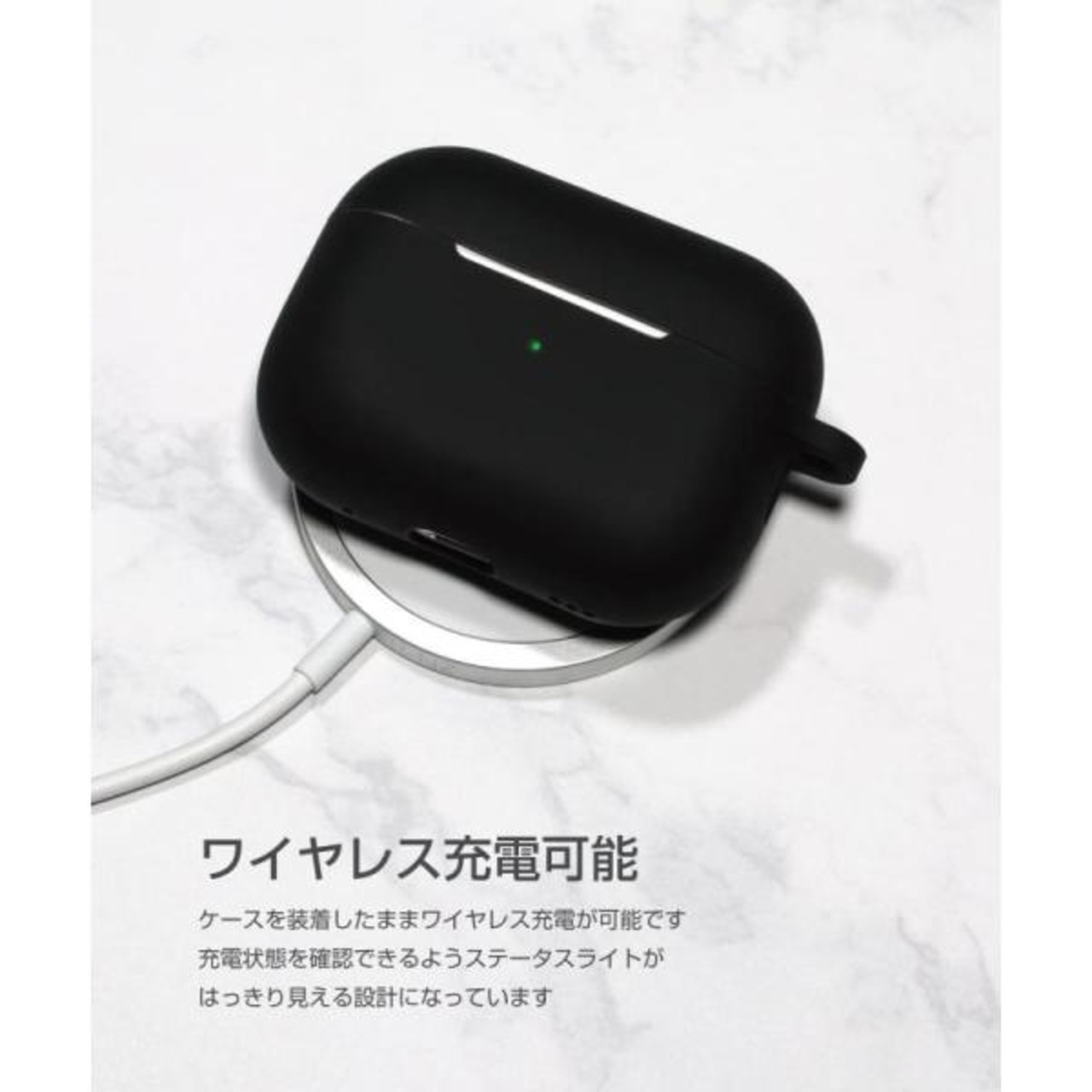 [musashino LABEL] AirPods Pro第2世代用シリコンカバー (Black) シリコン製 保護カバー 装着充電可能 ワイヤレス充1