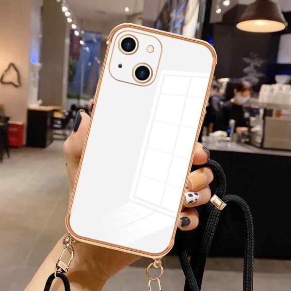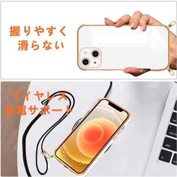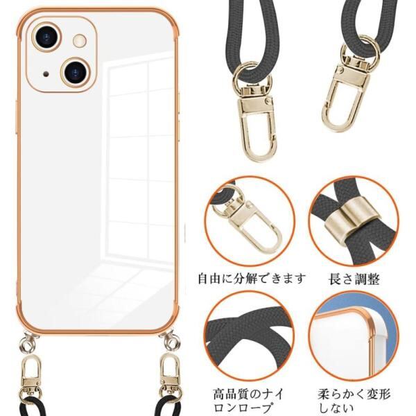 iPhone 15 用 ケース ショルダー 新型韓国 可愛い 薄型 軽量 TPU 耐衝撃 シリカゲル メッキ加 TPU ネック ショルダー ストラップ1