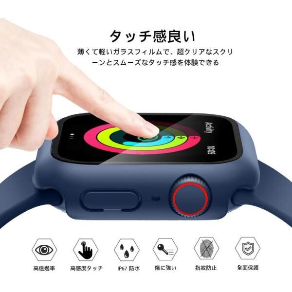 POLINK 対応 Apple Watch ケース Series 9/8/7/6/5/4/SE2/SE 45mm PC素材 強化ガラス アップルウォッチ 保護カバー 超薄型 高耐久 耐衝撃 高透過率 指紋防止 対応 Apple Watch カバー 全面保護 ダークブルー