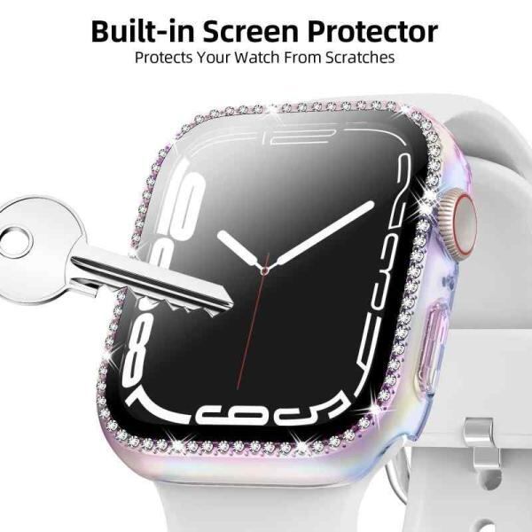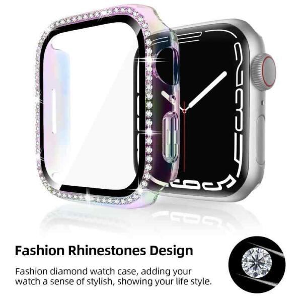 キラキラストーンが特殊接着剤でケースのフレームにちりばめられて、取りにくいです。ジュエリーのような華やかで高級感であり、周りから可愛いと評判させるデザインですAppleウォッチを新しいスタイリッシュな外観にしよう