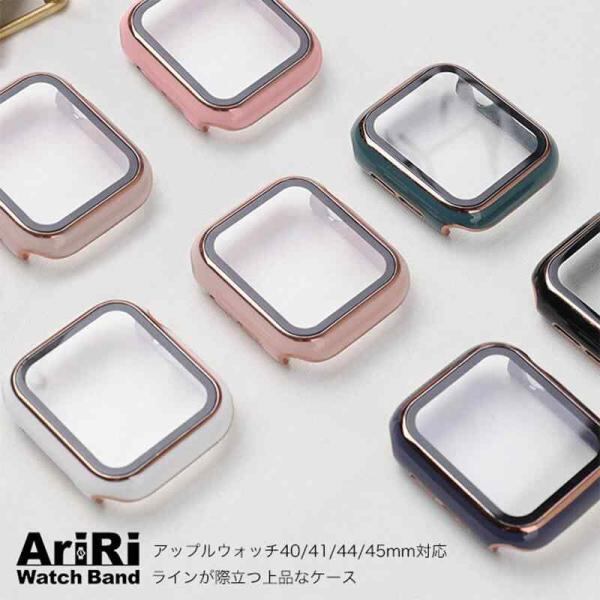 AriRi アップルウォッチ カバー ケース ライン入りデザイン 40mm 41mm 44mm 45mm (41mm, ブラック/ローズゴールドライン)