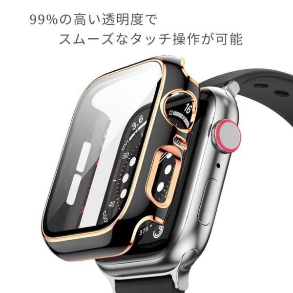 AriRi アップルウォッチ カバー ケース ライン入りデザイン 40mm 41mm 44mm 45mm (40mm, ピンク/ローズゴールドライン)