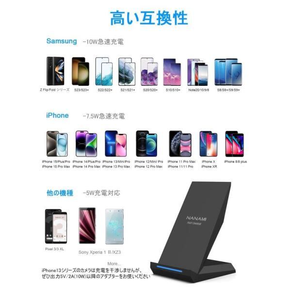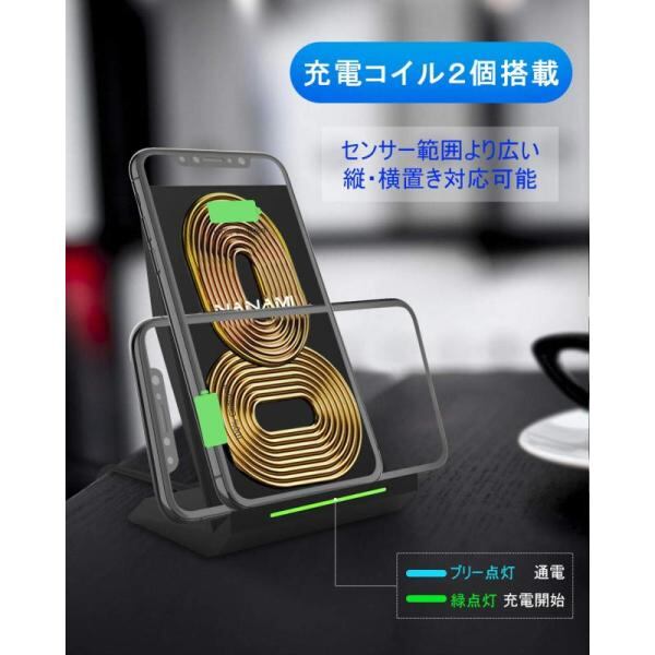 NANAMI ワイヤレス充電器 Qi急速 充電スタンド 2台セット 置くだけ充電器 15W/10W/7.5W iPhone 15/14/13/12 (1