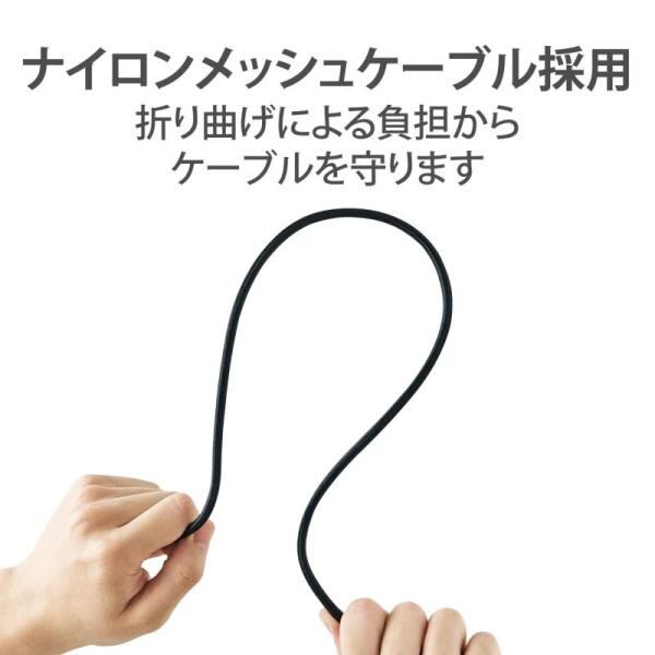 折り曲げの負担がかかりにくいナイロンメッシュケーブルを採用しています。