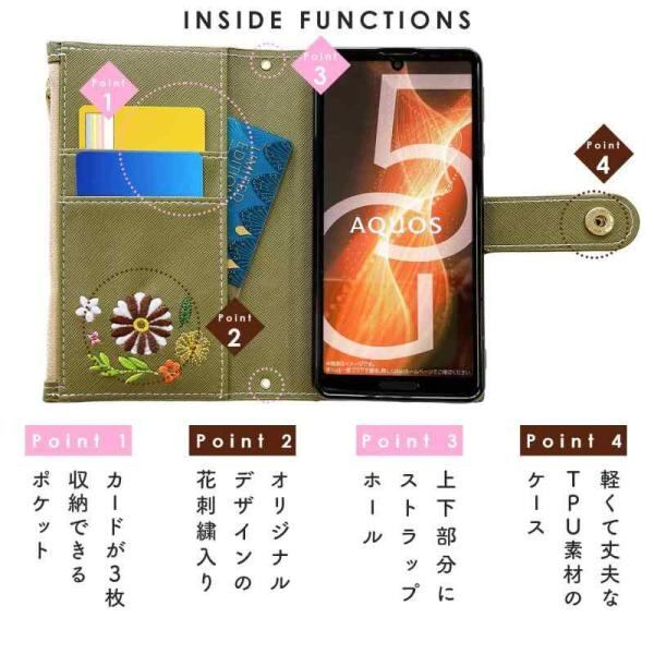 Xperia 5 V SO-53D SOG12 XQ-DE44 用 ケース 手帳型 カバー 手帳型ケース SO53D SO-53Dケース SO-53Dカバー SOG12ケース SOG12カバー XQ-DE44ケース XQ-DE44カバー おしゃれ花刺繍 オリーブ