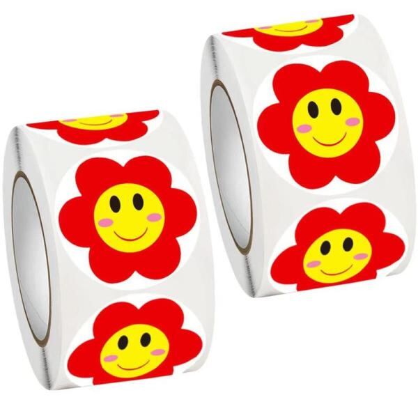 Bicoozz 可愛い笑顔シール ごほうびシール 1000枚入り 赤 花 ご褒美シール 丸型 ステッカー 教師褒美用シール よくできましたシール トイ1