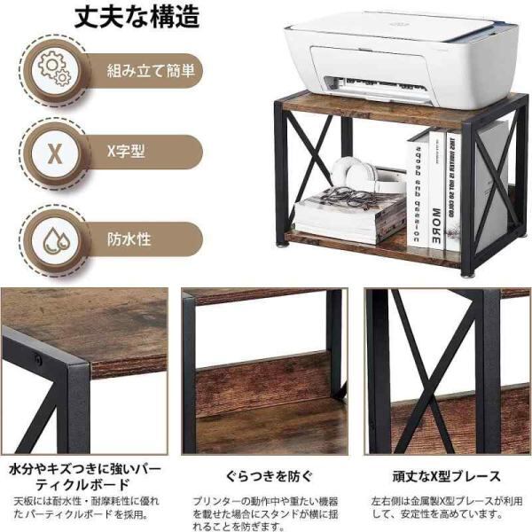 JIYUNII プリンター台 プリンターラック 木製 2段 プリンターワゴン 卓上収納 プリンター収納 机上&机下台 キャスター付き プリンタースタン2