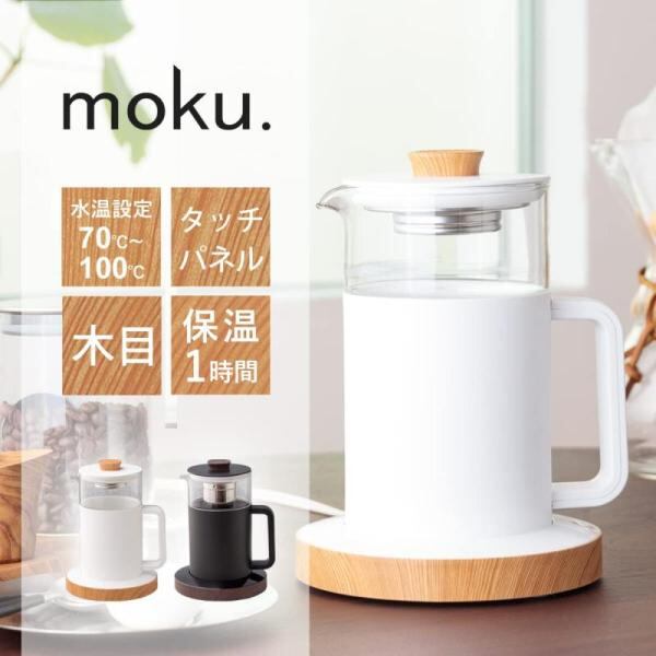 moku. 電気ケトル 温度設定 5段階 木目デザイン 保温機能付き ガラスポット ホワイト×ナチュラルウッド (ブラック×木目)